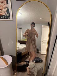 tons of compliments on this! So cute to dress up or down. Top is a little big for the smaller chested gals but adjustable straps makes it work!