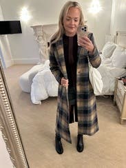 I loved how long this was (even for as short as I am) - I’m always cold, so I love how I feel like I can just wrap up “in a blanket” while out to eat. I was excited to be the first to rent this - with tags still attached, however, after just a couple wears I noticed how loose the buttons are. I was surprised at how poorly they are attached (haven’t fallen off yet, but they will within the first few rentals). The wooly exterior also fuzzed off on my seatbelt and bag straps. This would not look as nice after much use - glad I’m only renting!