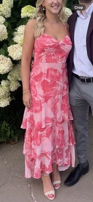I wore this dress to a rehearsal dinner this summer and I loved it. The ruffles are so pretty and I received lots of compliments. It was a great dress!