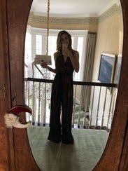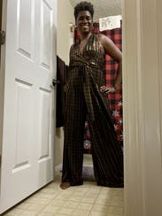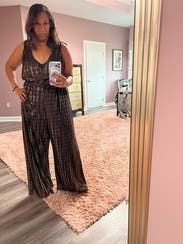 I wore this for Thanksgiving dinner. I could've used a size smaller for sure. You have to be tall to wear this one because I'm 57 and I needed feels for it to not drag on the floor. I felt special wearing this beautiful jumpsuit