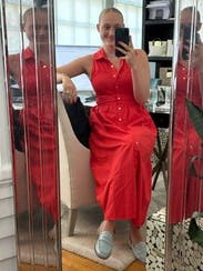 Red isn’t usually my color, but I wore it to parents’ weekend at my son’s college because it matched his school colors. Very comfortable, flattering and forgiving on the waist.