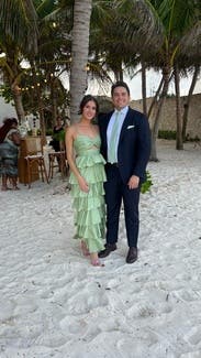 I can’t say enough good things about the dress. It might be the fanciest thing I’ve ever worn but still seamlessly fit at a cocktail attire wedding. I felt amazing in the dress and received so many compliments. The color was perfect for a spring outdoor wedding and the ruffles survived shipping, a 3 hour plane ride, and 6 hour drive. It did take a little work to make it fit perfectly. I have a large bust (34DD) - when trying it on it was very clear I needed assistance from an exorbitant amount of underboob. I used boob tape to pull the ole girls up and over and then toupee tape to make sure the top stayed in place. Two other fit considerations 1) The satin straps fell a lot when I was dancing and required a lot of fixing. If you wish to make it a strapless dress, you can tuck the straps in. But for those who require straps to keep the dress up, dancing in this dress may be too much stress. 2) The dress is slightly on the longer side for me. I wore 3 inch platforms and it was just slightly above the ground. If there was a petite option, I would’ve absolutely gotten that one.