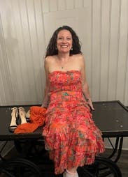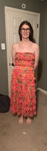 I am OBSESSED with this dress. If I could buy it and keep it, I would! Wore to a wedding with “elevated garden party” dress code. When I tell you I felt like an It Girl for maybe the first time ever… this dress is everything. Fits TTS but it definitely is roomy in the chest (has molded cups)—was perfect for my 34Fs and could accommodate bigger too! The bodice has boning which gives great structure, and the fabric is SO light and comfy. This dress weighs next to nothing and was SO comfortable, not a scratchy material at all, more like soft mesh. It’s fully lined and the outer mesh ruffle skirt is fun to swish around on the dance floor. I got compliments all night long, felt super cute, and was comfortable. What more could you want?! I’m 165 5’7 34F and I wore the 8.