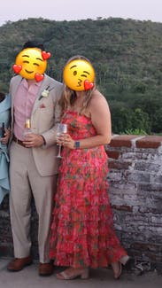 Perfect beachy destination wedding guest dress! It was super light and comfortable all night, even in the heat/humidity. I’m small chested so the top was a bit too large on me, but stayed up fine.