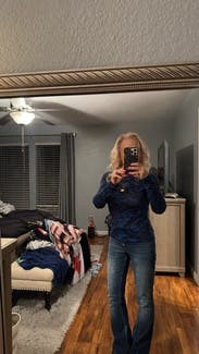 I liked the pattern and the bright blue! If it was just an inch or two longer, it would have been a 5 star shirt for sure! Very cozy fabric and form fitting.