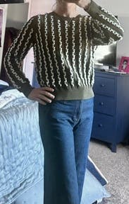 I was worried it might look a bit like “your dad’s sweater”, but it was actually cute and stylish. It’s comfortable and wasn’t itchy. Easy to wear and my friends love it too. I’m usually between a small and medium, and I got the small for this and it was perfect! It was loose enough to hide my rolls but not too loose that it made me look bigger than I am (iykyk).