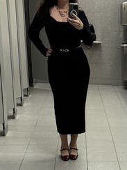 This dress hugs curves and is very versatile. Kept me warm!