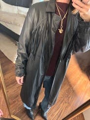 I was on the fence about this one. Needed a leather trench coat so I just went for it. There is a fine line between western fringe and contemporary fashion fringe. This is contemporary fashion fringe perfection. I wore this so many times and I cannot tell you how many compliments I got. It does fit on the larger side but it gives you room to layer. A jacket like this is the reason one does rent the runway. Not something I’d normally purchase but I absolutely loved having it. If you are on the fence, get this!