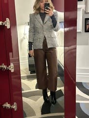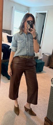 I really wanted to try this trend of cropped gaucho pants and really was happy with them! The faux leather is a great color and super comfortable. The stitching elevates them a bit. I want to style them with tall boots and a blazer later. Def give them a try if you love experimenting with fashion!