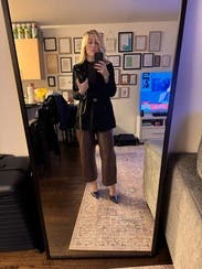 I’ve rented these before and loved them. Still do. Perfect for work or casual or going out. Fit is very flattering and the chocolate brown color is so rich for fall. Very comfortable too.