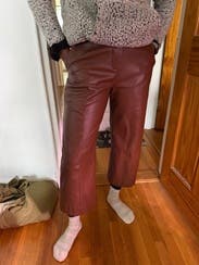 Dark red unique pants. I paired with a sweater and wore a spandex cami under tucked in. Loved these!