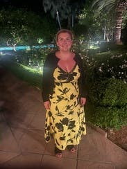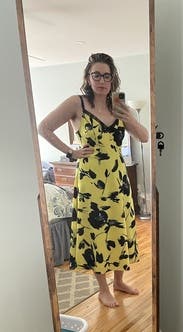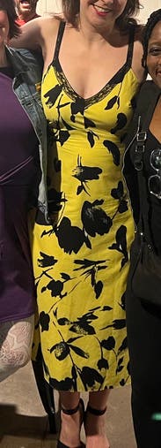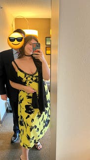 Ended up wearing this for a fall wedding! I was nervous the yellow was too “summery” but I paired it with a black shawl and it was perfect. Definitely something I wouldn’t see myself buying normally but I fell in love! So comfortable & fit my body in all the right places. The straps were a bit flimsy but nothing terrible. Speaking of the straps, they were made of beautiful black lace & I just happened to have a black lace choker that sat in my jewelry box for ages but matched perfectly! Stepped outside of my comfort zone to wear it together and I’m so happy I did — such a chiq look that received a ton of compliments!