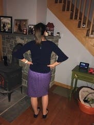 This wasn't a perfect fit--too big in the waist, but just snug enough in the hips that I don't think I could go down a size. That's just how it goes for the hippy in a pencil skirt. But I loved wearing this so much I had to buy it and now I want the blazer too.