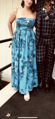 Great summer wedding guest dress! I loved the print and it was very secure for a strapless. Only complaint was that the boning was poking me a bit, but not a huge deal.