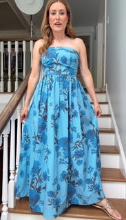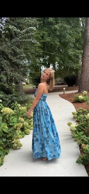 Jewel x Badgley Mischka's Strapless Maxi Dress in blue floral is a breezy, floor-length piece that captures the essence of summer elegance. Pair it with strappy sandals and a woven clutch for a relaxed yet refined look.