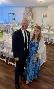 Loved this light blue floral dress for an outdoor summer wedding! The fabric is lightweight and the length was just right!