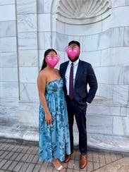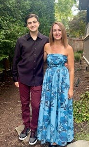 This dress looks so pretty in person. It fits like a glove, but it is very very hot and the material feels like a shower curtain liner and it is also very noisy when you walk but other than that it’s a fantastic option.