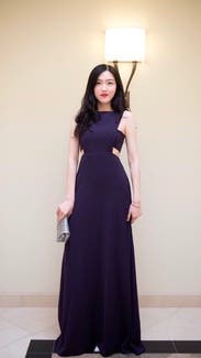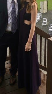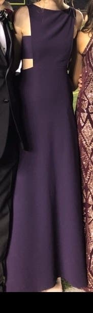 The deep purple is perfect for any formal occasion but the cut outs make it fun. I wore this to my law school prom and it was one of the prettiest dresses there! This dress is true to size and very comfortable/flattering. Plus what girl doesn't like pockets? 10/10