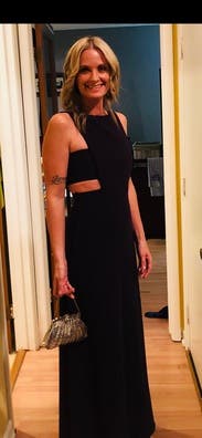 Try to keep this review short but this dress was amazing. Had pockets though I didn't really use them but still awesome when a dress has pockets! We had just gotten back from vacation so I gained a small tummy but the dress hid it well. Was thick material so kept me warm despite the cutouts. Was very comfortable. A little long but i'm short so I have that problem with everything! I wore 3+ in heels and was still carrying the dress when I walked and especially danced. The picture I posted isn't great cause of course we forget to ask anyone to take a full length picture of us at the wedding. I would recommend this dress. My only complaint is that it was too long. This is my 2nd time renting from RTR and I have nothing but great things to say about this service. Thank you!! Wish I had another event soon so I have a reason to rent again!