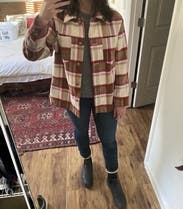 I love this shacket! It isn’t lined so it is rather itchy if your arms aren’t covered but I got used to it. Also, there are no pockets which would be useful. Otherwise it’s the perfect fit and cozy for Fall layering.