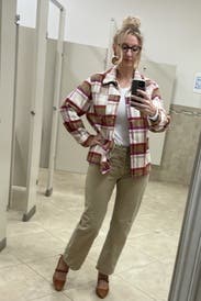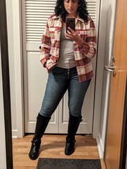 Tried out the shacket trend with this one. It was a bit too boxy and scratchy, but I'm glad I gave it a shot. May want to size down for a more tailored look.