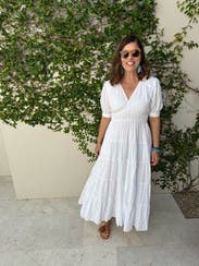 This breezy white midi dress from Joe's Jeans features delicate eyelet details and a flattering V-neckline. Perfect for a summer day, pair it with strappy sandals and a casual tote.
