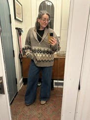 Loved the thickness and coziness of this sweater. If I had to get it again I would probably go with a large, but this wore great with jeans or leggings