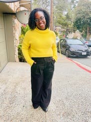 I liked these pants, but can't say I'm in love with them - and I wish I could say why! The wide leg is very well designed from the waist to the floor, and the length is absolutely perfect for 5'8" in flats. The color is black and completely unfaded, despite the denim fabric. My hesitation may well be that they are super structured/heavy fabric, so the pleat at the front has maybe a bit too much stiffness - perhaps would be better if the pleat was ironed flat so it comes off a little smoother. Nice fitting, high waist. My rating approach: (5=LOVE LOVE; 4=Will rent again, a couple of details I would change; 3=Works but meh; 2=Won't rent again, but may work in some cases; 1=This should be burned). I am on RTR to try new styles and find sizes for my post-menopausal weight/body shape.