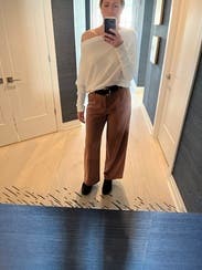 Very flattering and fun pant. The material is thin but not too thin. I’m typically a 29 in pants, and rented a 6. They were beautiful and I wore them several times, but I’ll size down to a 4 next time I rent to see if that’s a better fit. They fit a bit too big/low the waist in this size, but not bad.
