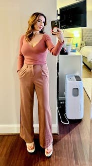 I got so many compliments on these pants! The color was perfect for late winter/spring, and the material was extremely soft. And bump friendly! I wore these during the second trimester, two sizes larger than what I normally wear. They were perfect and stylish for my mini-bump period. I would have purchased if I had been renting my normal size.