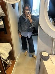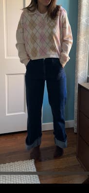 I loved these jeans! The dark wash, cuffed, wide leg cut looks very stylish. These fit me perfectly (maybe an inch or two longer than I'd like, but I'm short and they were still fine with sneakers) and were very flattering, as well as super comfortable. The best jeans I've rented so far.