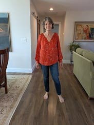 Really loved wearing this blouse. It has a really cute detail along the bottom edge. I just wore it untucked which I rarely do. Fairly low V so I did wear it with a camisole.