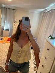 This top was so cute. The material and design was comfortable, and I liked that you could tie the straps at the shoulders and the v-neck. I loved the soft yellow color.