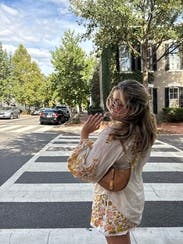 Loved this blouse. It was such a pretty look at an upscale restaurant on vacation. The sleeves were really long on me though.