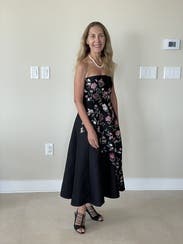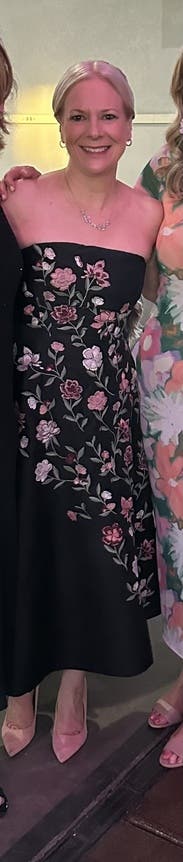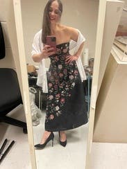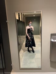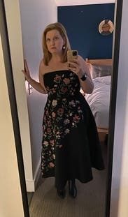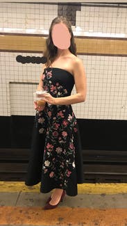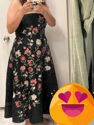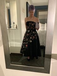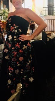 I rented this dress and another for a wedding weekend. My plan was to wear this dress for the rehearsal and the other too the wedding. When the “wedding” dress didn’t fit (too long), RTR came through in a big way with replacement dresses. Ok, back to this dress. First of all, it’s a kate spade. I’m not typically a brand snob but wearing such a well know name was a good ego boost. Second, it’s a super quality dress. The weight and construction is incredible. The embroidered flowers are very detailed and make the dress a versatile stunner perfect for any event. It does run small in the chest. I’m currently in a changing body, and wasn’t sure about sizing. I didn’t wear a bra and, due to the heavy fabric, was able to get away with that but I posted a pic kind of from the side so you can see how it flattens you out. Not unflattering I don’t think but something to be aware of. It has pockets and flows beautifully off the hips. I received several compliments. Excited for the other dress tomorrow. I would definitely rent this dress again.