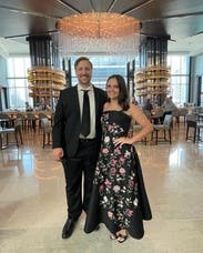 I felt so elegant in this dress! The fabric is heavy and the embroidery made it a little stiff but in a good way. It was substantial enough that I didn’t need to wear a bra. I knew from previous reviews that this dress would be longer on my petite 5’1” frame than a typical tea length dress should be but I ordered it anyway. Indeed, the hem landed a couple of inches above my ankles but because of the full skirt and the fact that I wore 4 inch heels, it looked appropriate. The torso fit comfortably for the most part though one of the corset ribs started poking into my side by the end of the evening but that may have had more to do with how much I enjoyed the cocktail hour, dinner and dessert(s), lol! I also loved the detail of the exposed gold zipper down the back and the way the embroidered flowers flowed around the side of the dress to the back. It’s always nice when the back of the dress is as pretty as the front. And of course the pockets were very handy, pun intended! It’s hard to find evening dresses that aren’t long and slinky or short, body conscious cocktail dresses, especially when you’re short so this was a great find to stand out from a crowd.