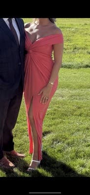 Wearing this to a summer wedding it’s perfect with heels. the off the shoulder creates a very elegant silhouette, and their rubber backs to keep it in place super comfortable. The front leg slit can be a little bit high so I’ll have to be careful.