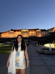 Comfortable dress to walk around and go sightseeing! I did have to steam before wearing. Wore this around while in Warsaw with a white wrap.