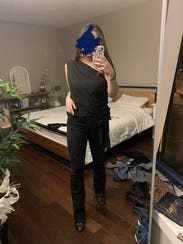 I was looking for a one shoulder black top that wasn't super form fitting or tight and this was a great option for that. The side has like a bow thing you can tie and I think it's placed a little weird so when you tie it the draping bunches up a bit. Still a beautiful top and definitely a great look for a night out