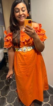 I absolutely love this dress. I am so disappointed I didn’t get any photos. I’m trying to find another time to wear it before I return. It’s so fun and comfortable. Such a unique piece I would never wear otherwise. If you’re debating, get it!