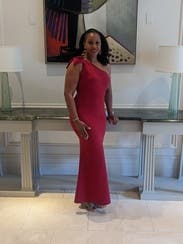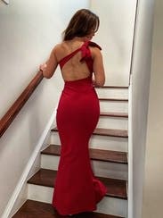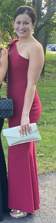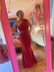 This is not a red color. Is more like a fuscia/dark . People complimented me. I wore size 8. I was happy to go from size 12 to 8. Thank you to RaR for throwing an extra size. I will rent again.