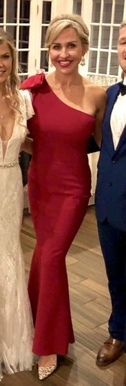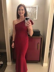 Attended a gala fundraiser during the holidays. Normally I wear 42R but this was a little too long in the torso for me. I made it work, tho. Wish I took a photo of the back. It made the dress unique amongst all the other red, off the shoulder, asymmetrical neckline gowns. The cut of this gown, with the slight flare at the hemline made me stand out on the dance floor. You can't wear a strapless bra, so I wore those stick-on cups. For reference, I'm 5'2", 124 lbs.