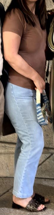 To be fair, these jeans still had the tag on them… The first wear was super tight, but they stretched out a small bit with the second wear to be slightly less uncomfortable. I enjoyed the light wash and a cropped jean - it was a little outside my normal style but I liked it. Paired with long top + big jewelry then long-ish sweater to draw attention away from the crotch! If I had gone up one size, I think these would have been just right.