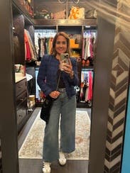 Great color and great cropped mid waist style. Aya right on the shoulders because of quality construction. You can’t go wrong with this one! .