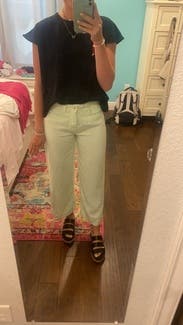 These were cute but didn’t fit well The rise was too short on me for these, so they didn’t look great in the butt or hip area (and weren’t that comfortable). I salvaged the look with a really long top and otherwise the color, fabric, and cut were really nice - so I might rent again a size up to see if that helps.