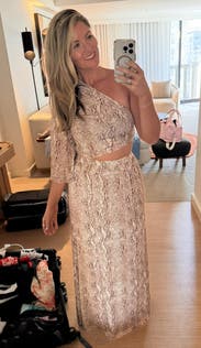 I liked this dress a lot. Fit great. Comfortable. The material makes it a bit more casual so it was perfect for a rehearsal dinner, party, or casual wedding. Not in love with the snake-print, but the style made it worth it.