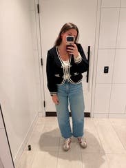 I wanted to love this but it wouldn’t stay buttoned so it was more annoying than cute. The details are lovely and the material is great. Sleeves are a little puffy but that added a nice detail. Cropped so I wore it with pants that weren’t so tight.