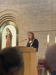 Cute cut - looks good either open or with buttons up. I was able to wear it both ways with my 20 week bump!