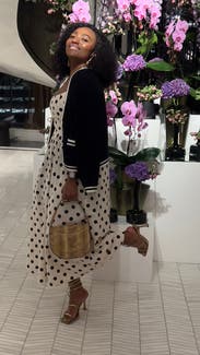 So cute with a black top under it. It’s very sweet and love the crop length. Sleeves are not too voluminous which sometimes doesn’t look good on me