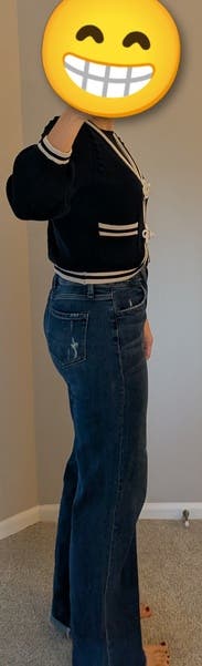 Fits perfectly and is such a fun work statement piece. I wore it with high rise slacks and the cardigan hits at the perfect spot.